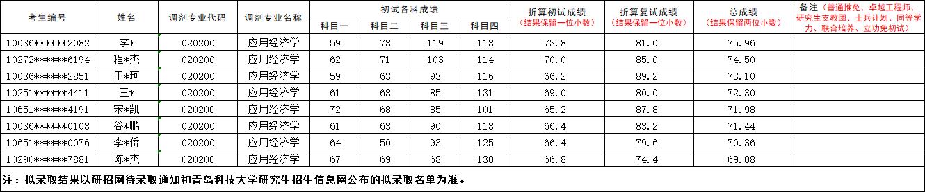 青岛科技大学经济与管理学院2026年硕士研究生招生复试成绩公布(4.10日调剂)