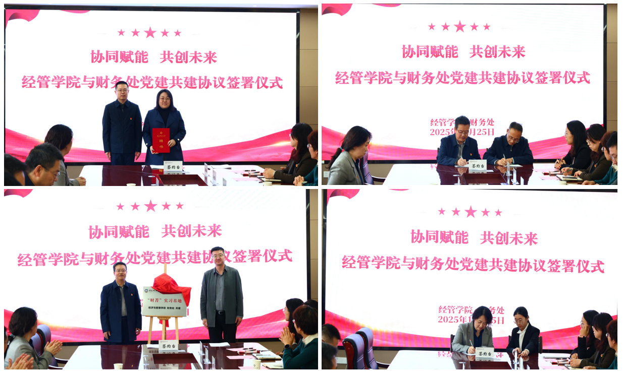 为深化校院协同机制、推动资源互补与人才共育,11月25日下午,“协同赋能,共创未来——经济与管理学院与财务处联合共建签约仪式”在经管学院313会议室举行。学校党委常委、副校长吕万翔,学校党委常委、组织部部长朱敬义出席仪式,财务处、经管学院领导班子成员及师生代表参加活动。仪式由经管学院党委书记李勋来主持。