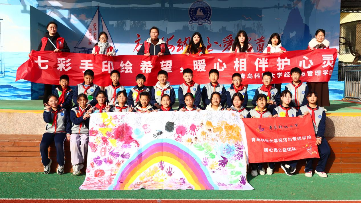 为积极响应加强青少年心理健康教育的号召,充分发挥高校服务基础教育的社会职能,促进小学生身心健康发展,经管学院暖心愿公益团队于11月28日赴崂山区石老人小学开展“七彩手印绘希望,暖心相伴护心灵”心理健康志愿服务。