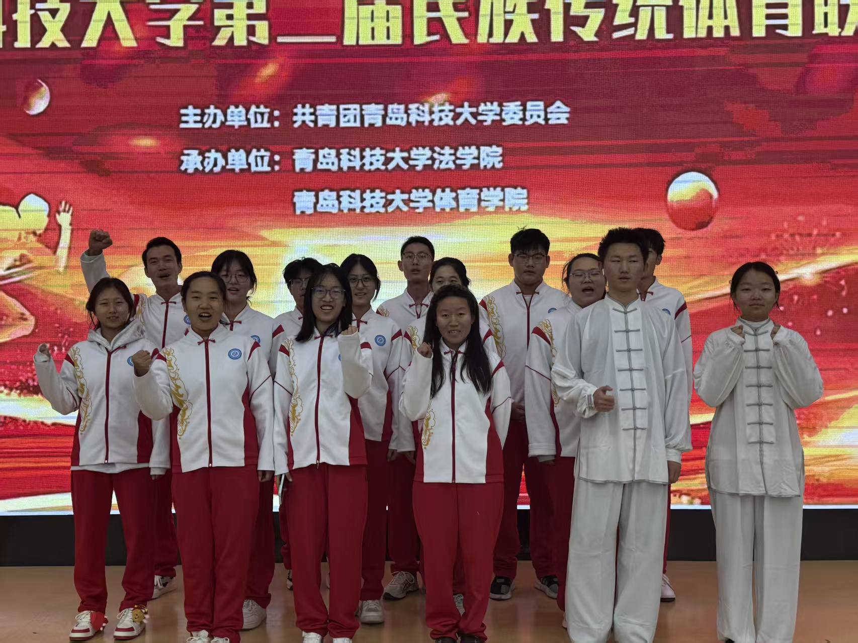 赛前,参赛学子潜心钻研项目精髓,反复打磨动作细节,从招式衔接的流畅度到节奏把控的精准度;赛场之上,队员们精神饱满、意气风发,伴随着激昂的旋律从容登场。无论是刚劲有力的拳脚招式,还是灵动协调的技巧展示,都将民族传统体育的韵味与力量展现得淋漓尽致。队员们专注投入的态度、整齐划一的动作,既彰显了对传统体育的敬畏与热爱,也体现了顽强拼搏的体育精神。
