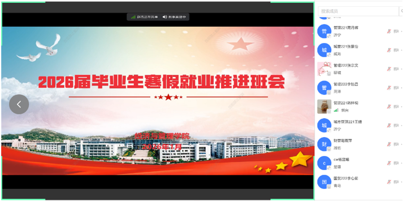 此次会议既是学院落实国家促就业政策的务实举措,也是深化精准就业服务的具体行动。下一步,经管学院将持续锚定“更充分、更高质量就业”目标,以“寒假促就业暖心行动”为抓手,不断优化服务模式、整合就业资源,让寒假就业服务有温度、有力度、不断线,全力护航2026届毕业生逐梦职场、扬帆远航。