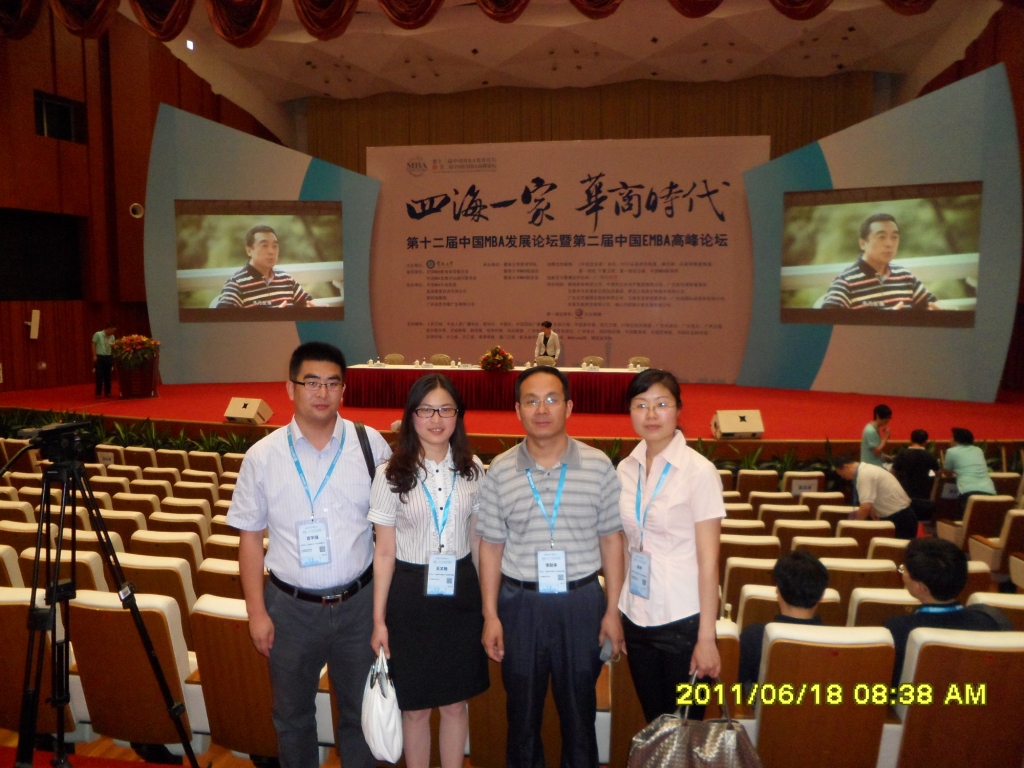 2011年6月18日上午,由暨南大学主办,暨南大学管理学院、暨南大学MBA联合会和MBA联谊会共同承办的第十二届中国MBA发展论坛暨第二届中国EMBA高峰论坛在广州白云国际会议中心岭南大会堂隆重开幕。青岛科技大学经济与管理学院院长助理、MBA教育中心副主任李勋来教授,MBA办公室王文艳老师及2010级MBA学员宫平强、李芹应邀参加了这场全国性的年度盛事。