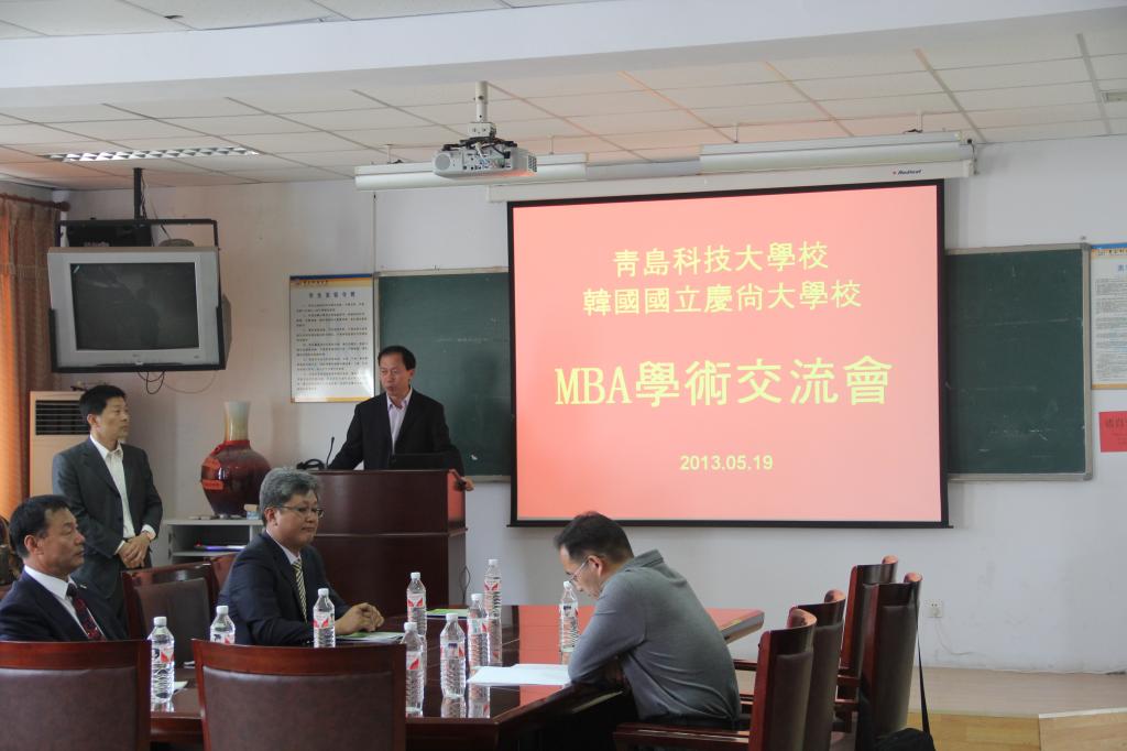 2013年5月19日下午,在经管学院511会议室举行了青岛科技大学与韩国国立庆尚大学的MBA学员交流会。参加本次活动的主要有青岛科技大学经管学院副院长王志宪,副院长兼MBA教育中心副主任李勋来、青岛科技大学2012级MBA学员以及韩国国立庆尚大学经营学院副院长金达昆、研究生办公室主任姜英奎、MBA联合会会长柳映宝以及12名MBA学员。交流会由经管学院副院长王志宪主持。