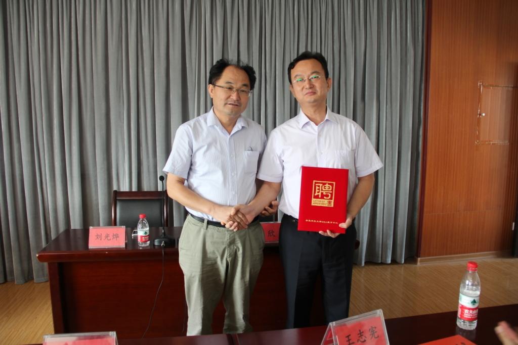 报告会正式开始之前,举行了兼职教授聘任仪式。王志宪宣读了聘任常欣同志为经济与管理学院兼职教授的决定,刘光烨为其颁发了聘书。