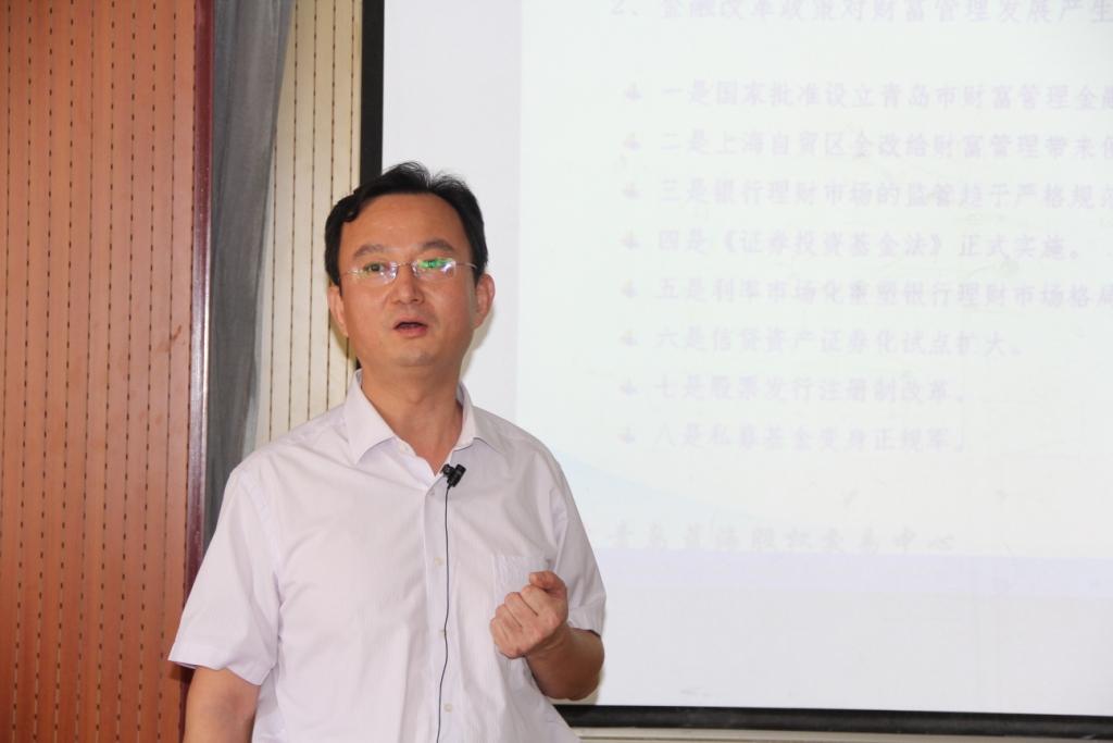 2015年9月12日上午,青岛市蓝海股权交易中心有限责任公司总经理常欣教授,在经济与管理学院504教室做了题为《中国多层次资本市场的发展方向和未来》的专题报告会。青岛科技大学副校长刘光烨教授、经济与管理学院院长王志宪教授及2015级MBA全体学员参加了报告会。会议由MBA教育中心主任李立教授主持。