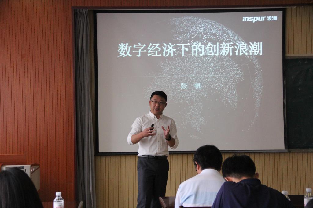 9月15日上午,在经管学院419室,浪潮(青岛)科技集团有限公司张帆总经理题为《数字经济下的创新浪潮》报告会顺利举行,报告会由经管学院院长、MBA教育中心主任王志宪教授主持。