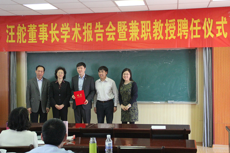 4月23日下午3点,汪舵董事长学术报告会暨兼职教授聘任仪式在青岛科技大学经管学院505室举行。青岛科技大学副校长张淑华,组织部部长聂法良,纪委副书记丛海燕,中德联合集团董事长、青岛西海岸发展集团副总经理汪舵共同参加,聘任仪式由经管学院院长王志宪主持。王志宪院长介绍了汪舵董事长的基本情况,张淑华副校长为其颁发了聘任证书。