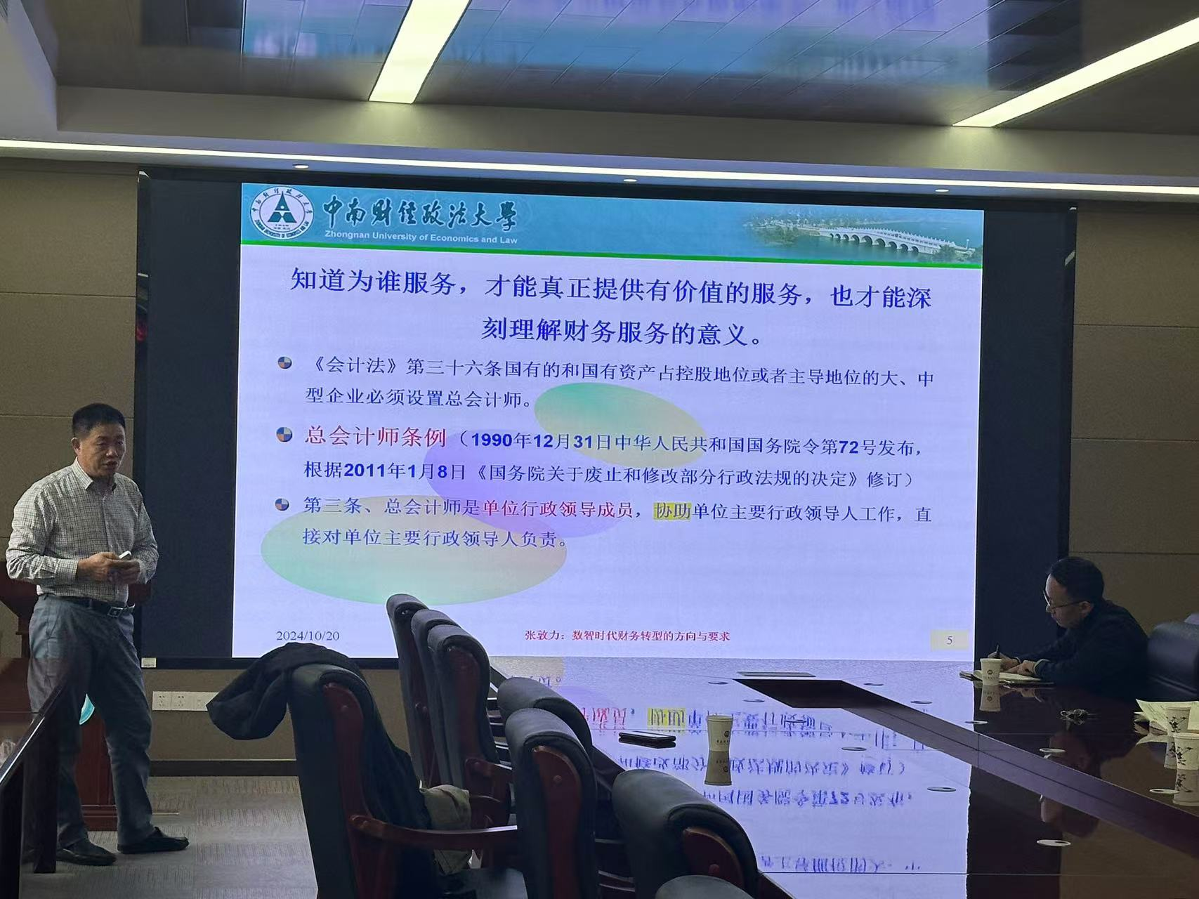 2024年10月20日,经管学院于313会议室开展了关于《数智时代财务转型的新要求》的高端论坛,本次论坛邀请了中南财经政法大学的张敦力教授带来经验分享和学习指导。本次活动由经管学院副院长姜铭老师主持,经管学院2023级会计师生到场学习。