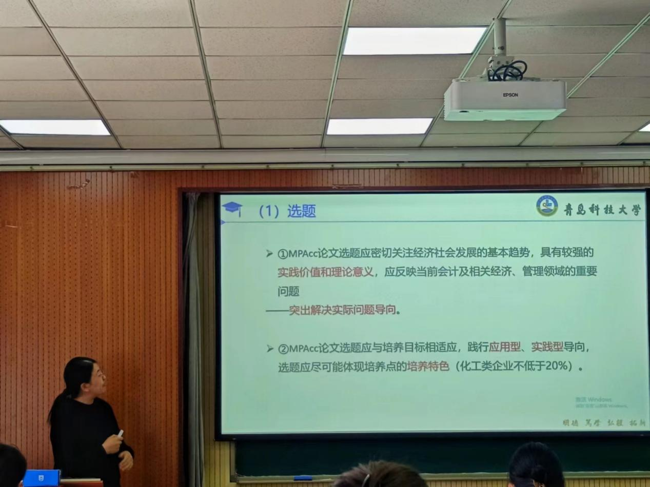 经济与管理学院于2024年3月23日下午,在经管楼505会议室组织开展论文指导讲座。本次讲座邀请孙兰兰老师为大家讲解青岛科技大学MPAcc毕业论文注意事项,会计专业21级、22级、23级的同学参加了此次讲座分享。