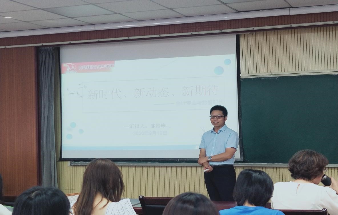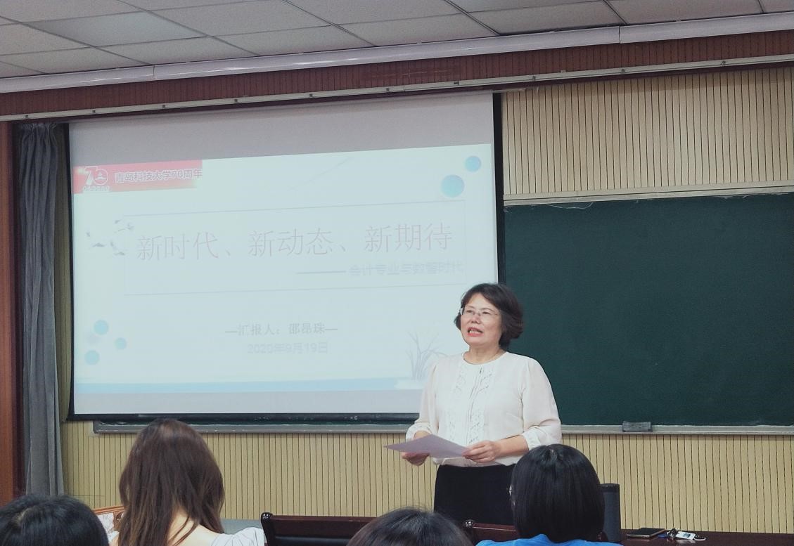 2020年9月19日9点,全国高端会计人才、青岛科技大学校外导师邵昂珠老师,以“新时代、新动态、新期待——会计专业与数智时代”为主题,为我院师生带来了精彩的高端讲座。讲座由经管学院MPAcc教育中心主任刘树艳教授主持,我院20级会计专硕全日制和非全日制跟班全日制上课的全体学生参加。