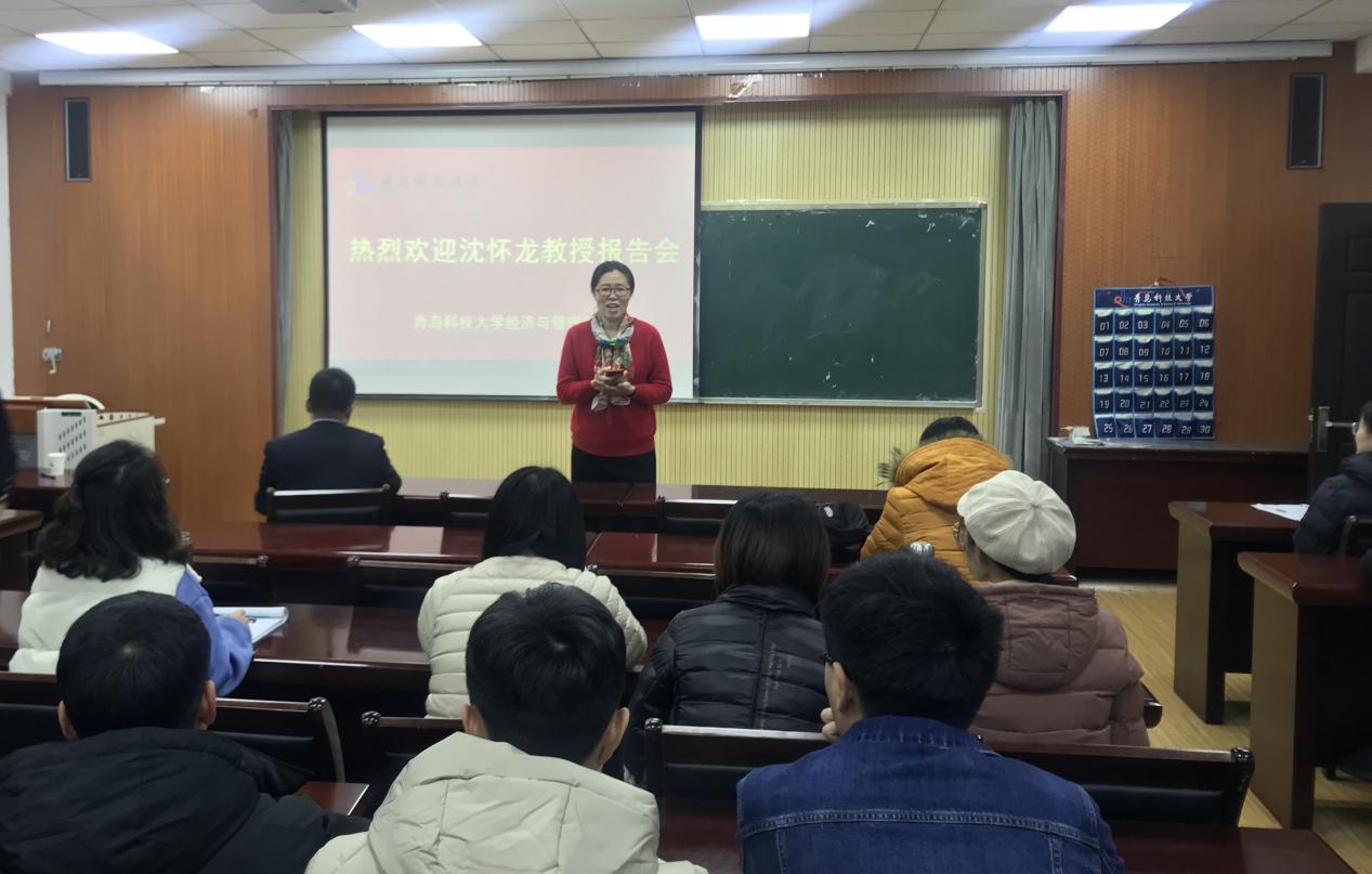 2019年12月21日晚18:00,山东省高端会计人才、产业教授沈怀龙博士,以“企业战略转型视角下的财务管理”为主题,在经管楼419教室为我院师生献上了一场精彩的报告。报告会由经管学院MPAcc中心副主任张占贞老师主持,我院部分教师、18级会计专硕非全日制同学以及19级会计专硕全体同学参加。