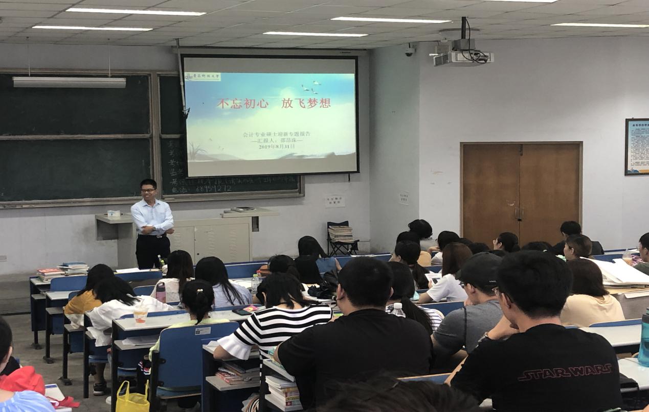 良好的开端是成功的一半。为了帮助新生更合理的安排研究生生活,开启新篇章,我院于8月31日上午9点特邀校外导师高级会计师邵昂珠老师为全体同学们进行了“不忘初心 放飞梦想”主题入学教育讲座。邵老师首先肯定了会计的就业前景,并对会计人的人生分阶段进行了规划。随后,对CPA 、注册税务师证、证券从业资格证、ACCA等证书进行了详细的介绍。最后,主要对会计相关的职业发展进行了数据化分析。按不同省份、不同工作岗位进行薪资对比,让学生更理智的了解了行业发展水平,以及未来的目标。此次入学教育内容丰富,意义重大,这场交流会为新生制定短期目标并合理安排三年的研究生学习生活奠定了基础。