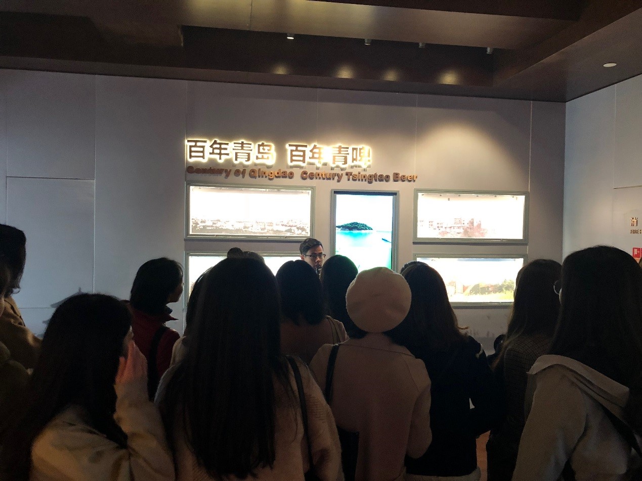 11月23日上午,同学们来到了青啤博物馆。通过参观青啤的历史和文化展馆,了解青啤成长的历史,感受百年啤酒文化,随后参观了啤酒的生产工艺流程和灌装车间,其高度自动化生产设备,让同学们体验到了现代技术和科学管理在生产中的重要作用,受益匪浅。