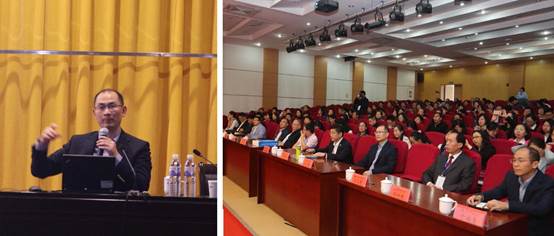 简短的开幕式后,三位与会专家分别就财务会计与审计教学进行专题报告。谭劲松教授分享了他在财务会计理论与实务课程教学过程中的体会,包括他对财务与会计课程的理解、课堂教学组织、学生课外资料查阅准备等做法。谭教授在报告中还展示了他上课过程所使用的课件,真实展示了其课堂教学情景,其课堂教学注重原理讲解、以实务为导向、通过开放式的作业提高学生的研究能力。宋德亮副教授的报告主要围绕内部控制教学中导入案例、环节案例、总结案例如何综合运用,其报告由安达信及普华的视频案例导入,通过一位工资核算员贪污巨款案例引出内部控制的一系列教学环节,其举一反三与举三反一的思考方式引人深思。范勋老师做了关于实施新金融工具会计准则对金融工具确认和计量的影响的报告,从资产负债观和利润观两个视角,结合日常案例,深入浅出,将复杂的金融工具确认计量问题,以风趣幽默的语言呈现给大家,给老师们留下深刻印象。