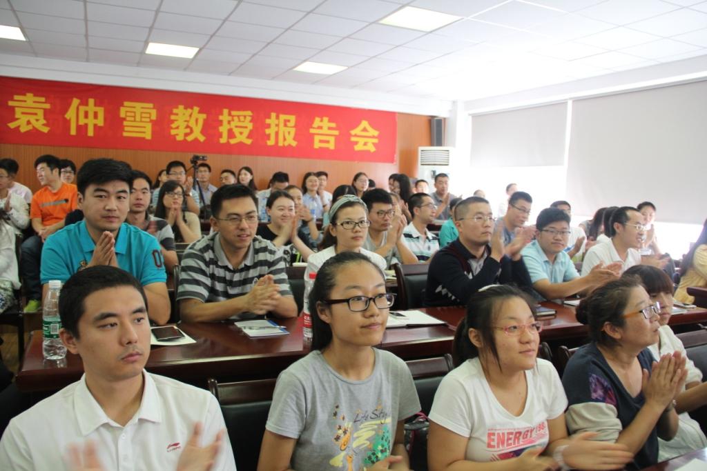 在随后的讲座中,袁仲雪以国家橡胶与轮胎工程技术研究中心为例,从创业思想与组织、创业实践与历程、管理创新三个方面阐述了中国民营科技企业如何践行中国制造2025的问题。他指出,企业应抓住时代特征,依托国家改革进行自身改革, “树文化旗帜,提精神境界”,创新股权分配制度,创造信任、创新、人本的企业氛围,谋求全产业链布局,在未来竞争中才能立于不败之地。整场讲座气氛热烈,不时响起阵阵掌声,同学们从中受益良多。